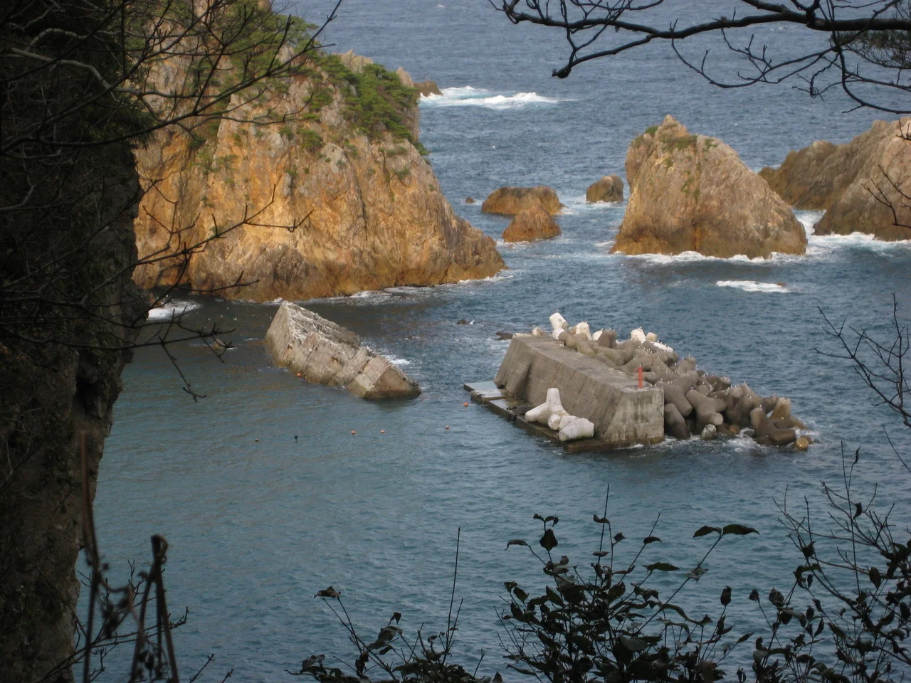 The overturned breakwater wall serves as evidence of the power of the 2011 tsunami.